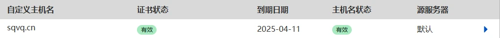添加主机名后,“主机名”会显示待定状态,我们需要在主域名sqvq.cn