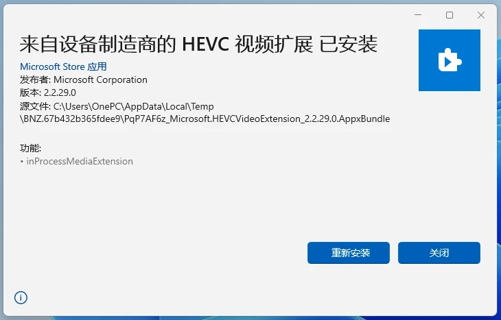 Win10/Win11 HEVC扩展一键安装,HEVCVideoExtension_2.2.29.0一键安装脚本免费下载。