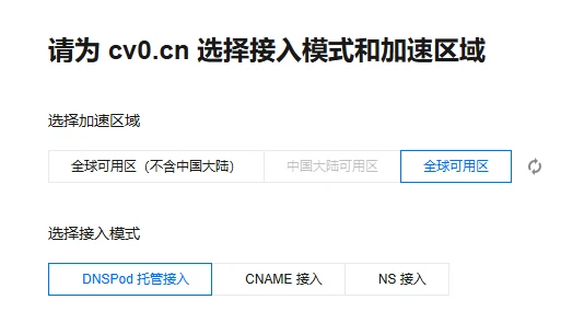 如果你的域名已经备案,且你的腾讯云原本已经实名,那么可以直接使用“全球可用区”的节点进行加速了。